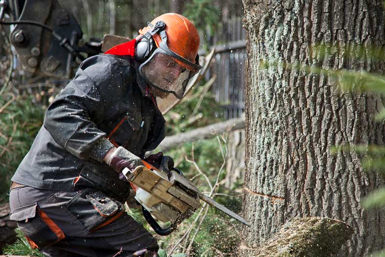 チェンソーで立木を伐倒するVRを体験できます!VR林業体験VR林業体験